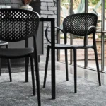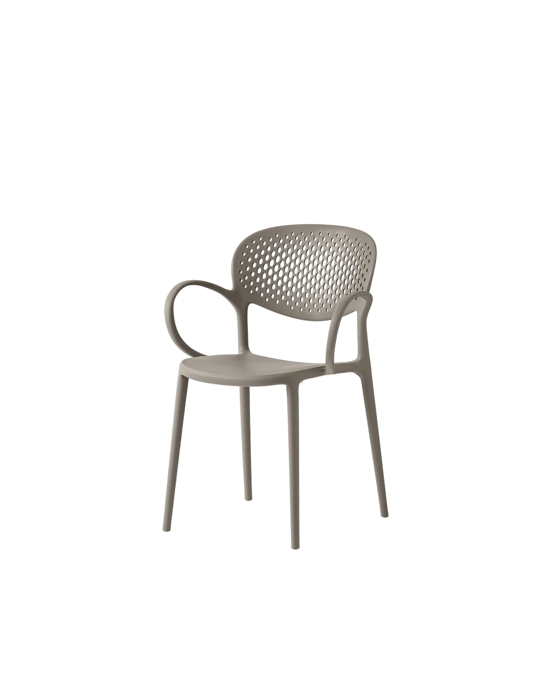 Abby si arricchisce con una nuova versione con schienale forato. Una composizione di fori degradanti decora la superficie dello schienale, rendendola più ariosa ed adatta all’uso outdoor. Realizzata in polipropilene 100% riciclato è una seduta versatile grazie alla possibilità di essere impilata con e senza braccioli.