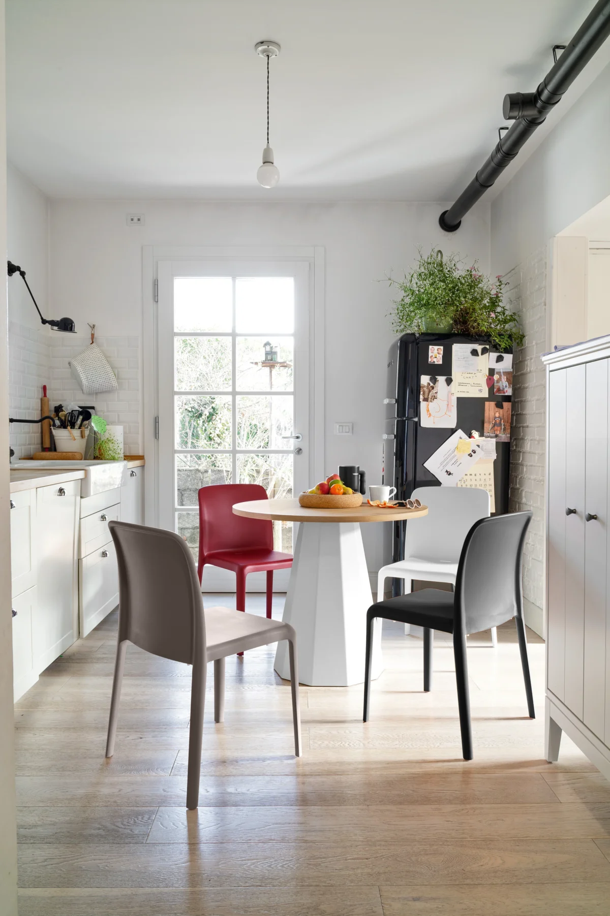 Sedia in monoscocca di polipropilene realizzata con tecnologia Air Moulding, capace di mantenere contemporaneamente leggerezza e robustezza. La contrapposizione tra un design deciso e gli angoli arrotondati enfatizza lo schienale leggermente affusolato. Adatto ad ambienti sia domestici sia contract. Perfetta anche per l’uso esterno, la sedia Bayo è impilabile per 6. Piedini intercambiabili.