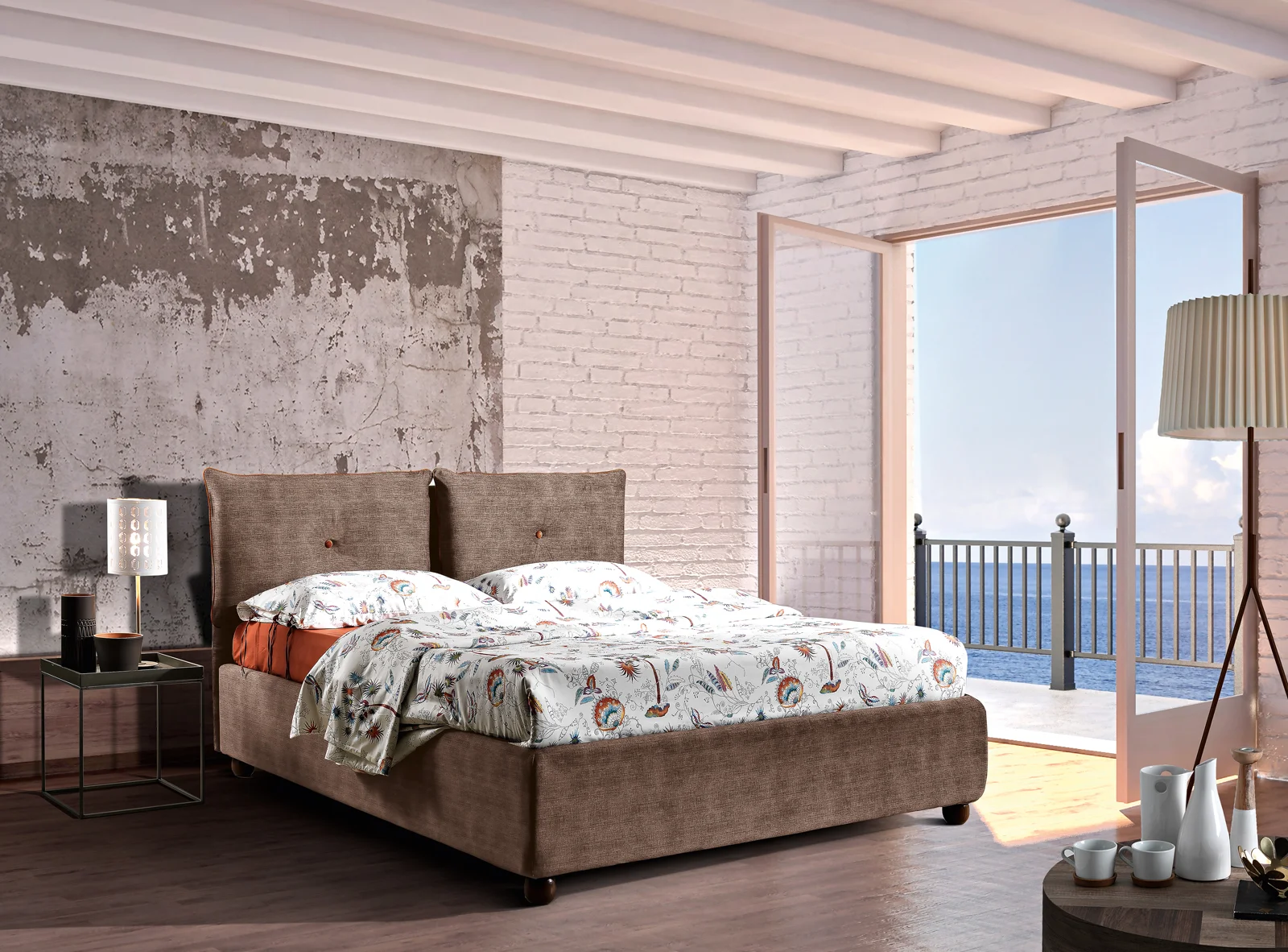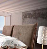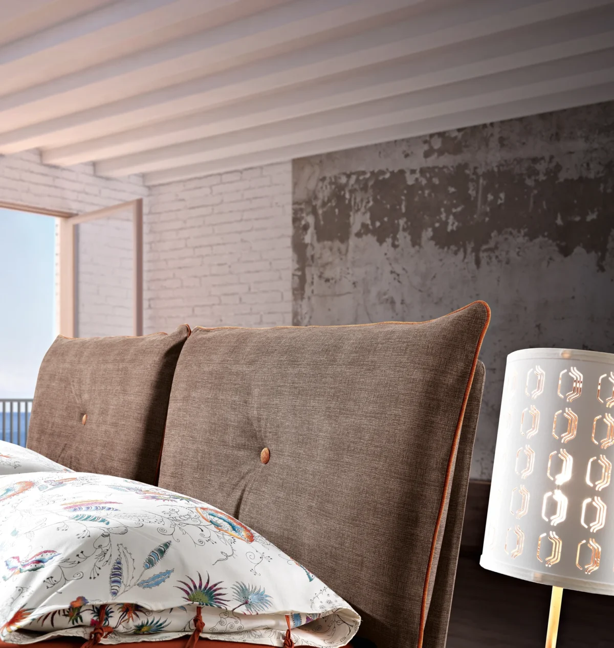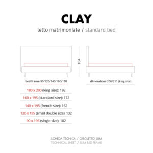Clay rappresenta il letto imbottito nell’immaginario di ognuno di noi. I due morbidi cuscini permettono un appoggio confortevole per chi vuole abbandonarsi in un rifugio accogliente e rilassante.