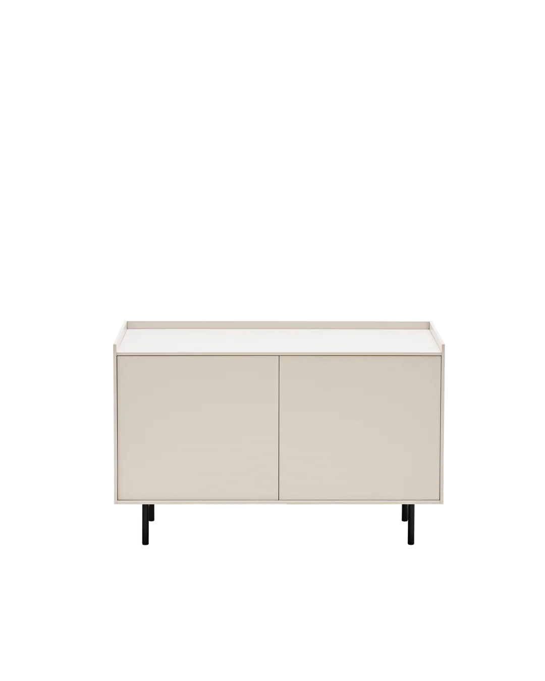 Discover our extraordinary family of sideboards, perfect for adding a touch of style to your home. Available in three different sizes, these sideboards feature internal glass shelves for organization and a light feel. The metal base lends strength and linearity, while the shelves and doors are covered in a delicate matte lacquer finish for a touch of refinement. The tray-like top adds a touch of originality to the sideboard, which can be used as a centerpiece in a room thanks to the attention to detail, even on the back. Their versatility makes them suitable for any space and use.