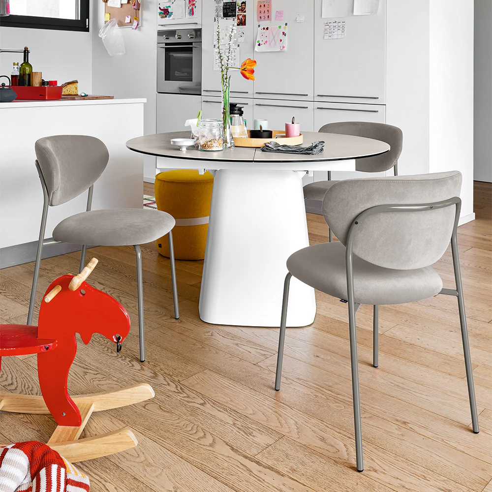 Cozy è semplicità , versatilità e leggerezza. Sedile e schienale avvolgenti imbottiti e rivestiti in tessuto, sorretti da un colorato fusto in metallo. Scegliete la vostra combinazione di colori preferita grazie alla vasta scelta di tessuti ed ai sette colori del fusto metallico.