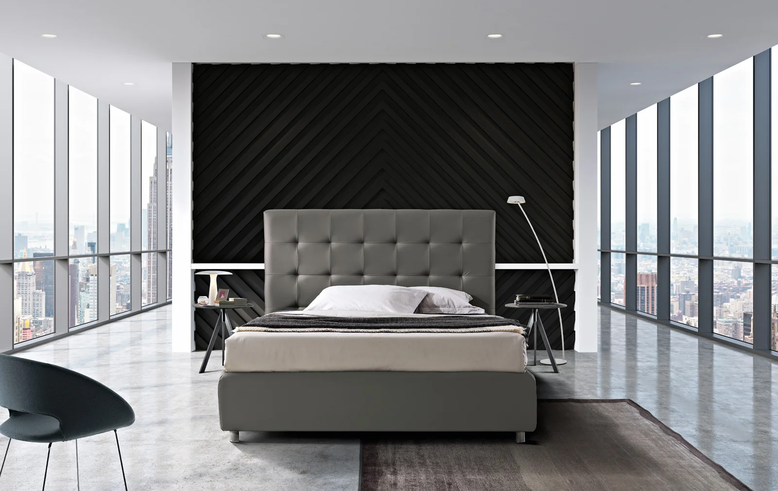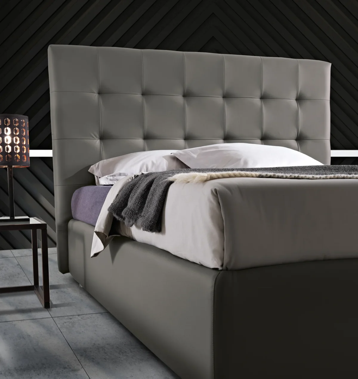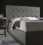 Domino alto è un letto imponente ma dalle linee semplici. I suoi quadrati perfetti, definiti da morbide cuciture, si innalzano verso l’alto per abbracciare i vostri sogni.