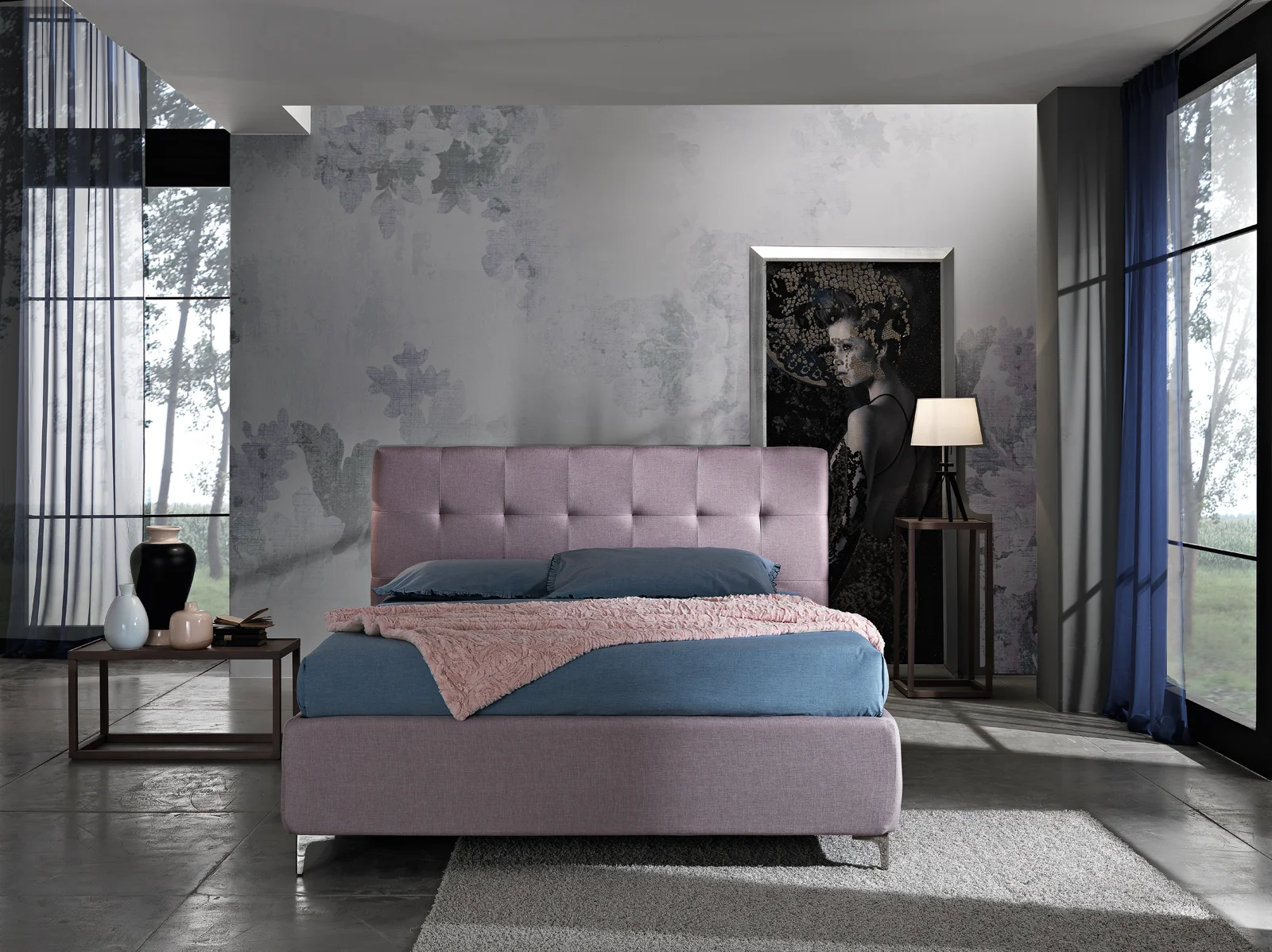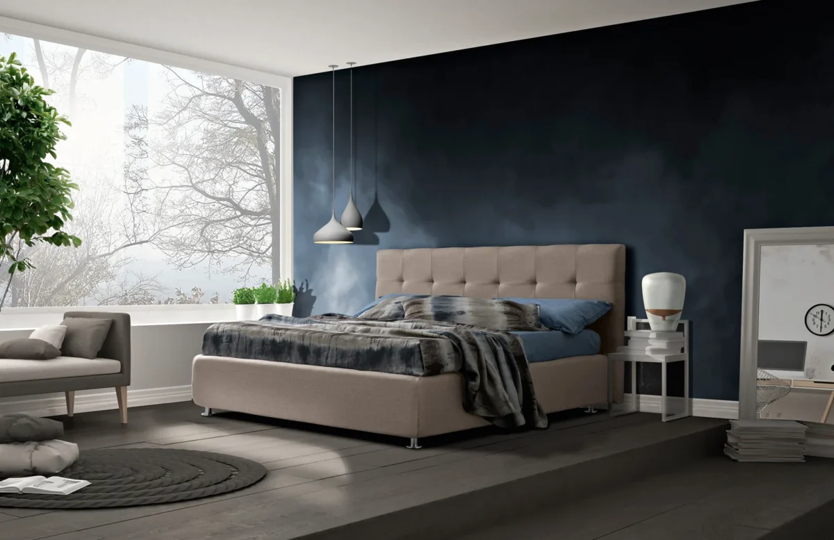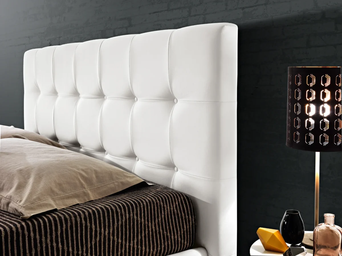 Domino è un letto dalle linee semplici e perfette create con morbide cuciture. Uno stile deciso che si adatta bene a qualsiasi tipo di arredamento.