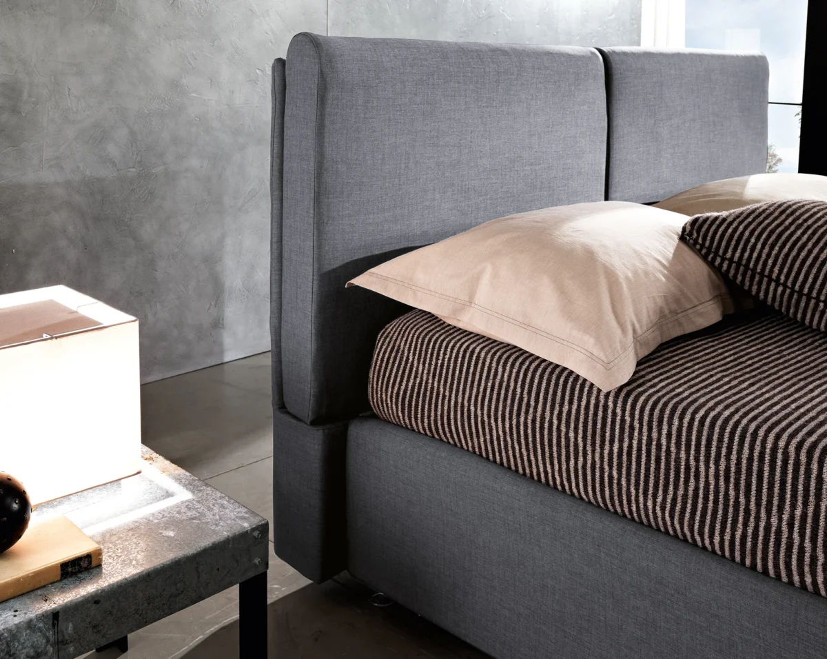 Double è un letto semplice e accogliente. La testiera è l’incontro di due morbide metà che si sfiorano in modo armonico e avvolgente.
