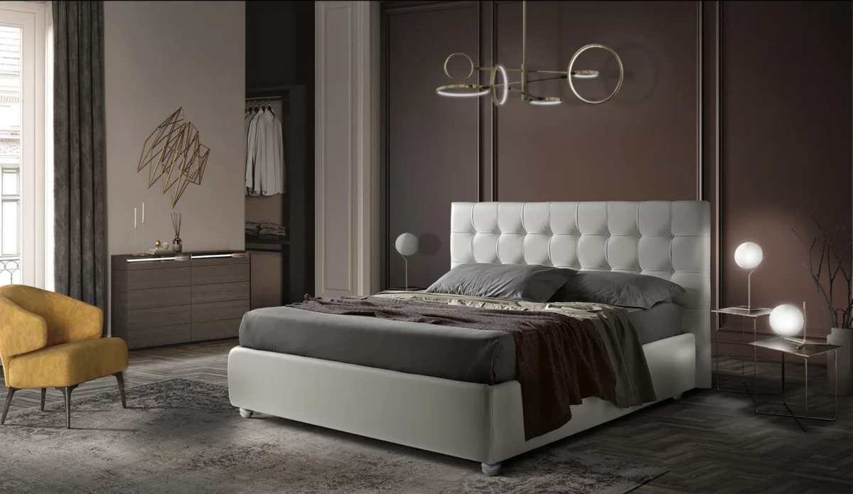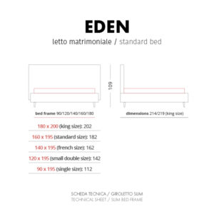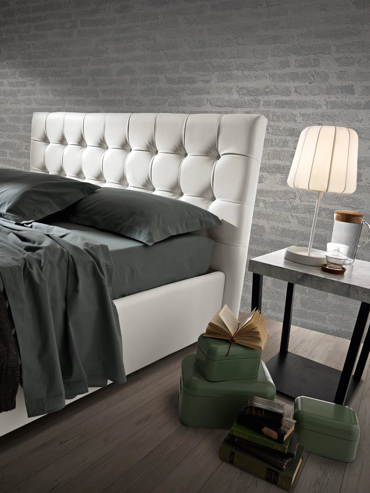 Eden è un letto che permette di percepire l’opera maestra dei tappezzieri sia nella testiera che nel giroletto. Un modello ricco di rifiniture, che vuole essere apprezzato in tutta la sua raffinatezza.