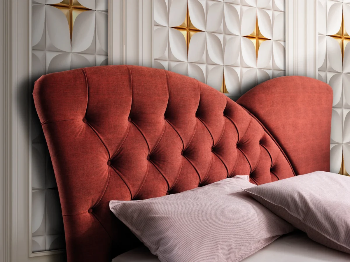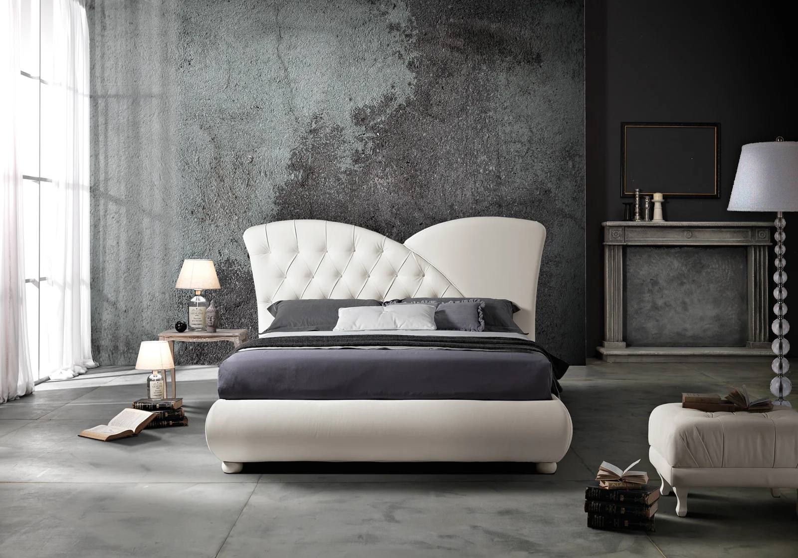 Il letto classico per eccellenza, capitonnè e inserto liscio danno idea di una linea fantasiosa, arricchita da swarosvki e bottoni.