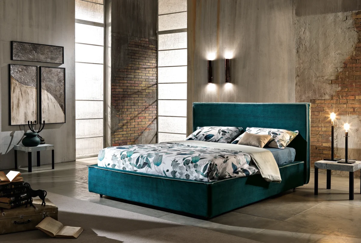 Jersey è un letto importante, caratterizzato da linee rigorose e da proporzioni finemente curate. Le cuciture rappresentano un tocco di preziosità aggiunto, e ogni componente trasmette una sensazione di comfort a prima vista.