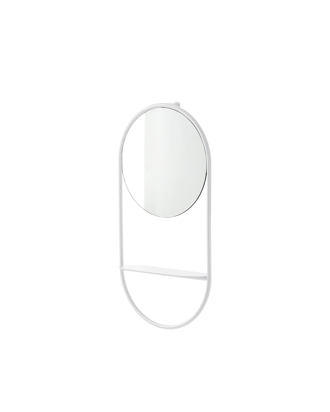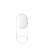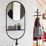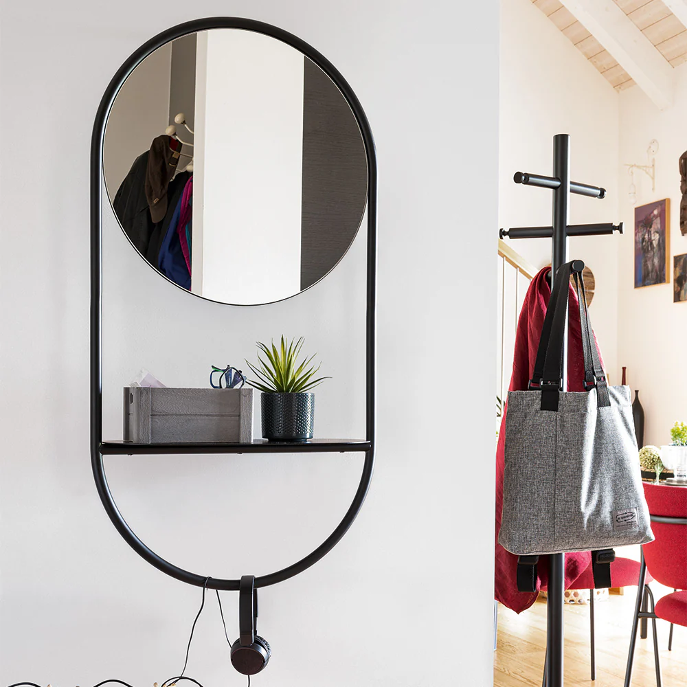 Specchio da ingresso con struttura perimetrale in tubo metallico. Completo di mensola porta oggetti.