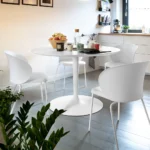Tavolo modello PLANET con basamento centrale a colonna. Piano rotondo.PLANET è un tavolo con basamento centrale a colonna in metallo. Il piano di forma rotonda è disponibile in vetro temprato oppure in legno. La comodità è garantita per tutti i commensali… anche quando sono in numero dispari!PLANET è il tavolo moderno ed elegante perfetto per la cucina e l’ambiente dining.