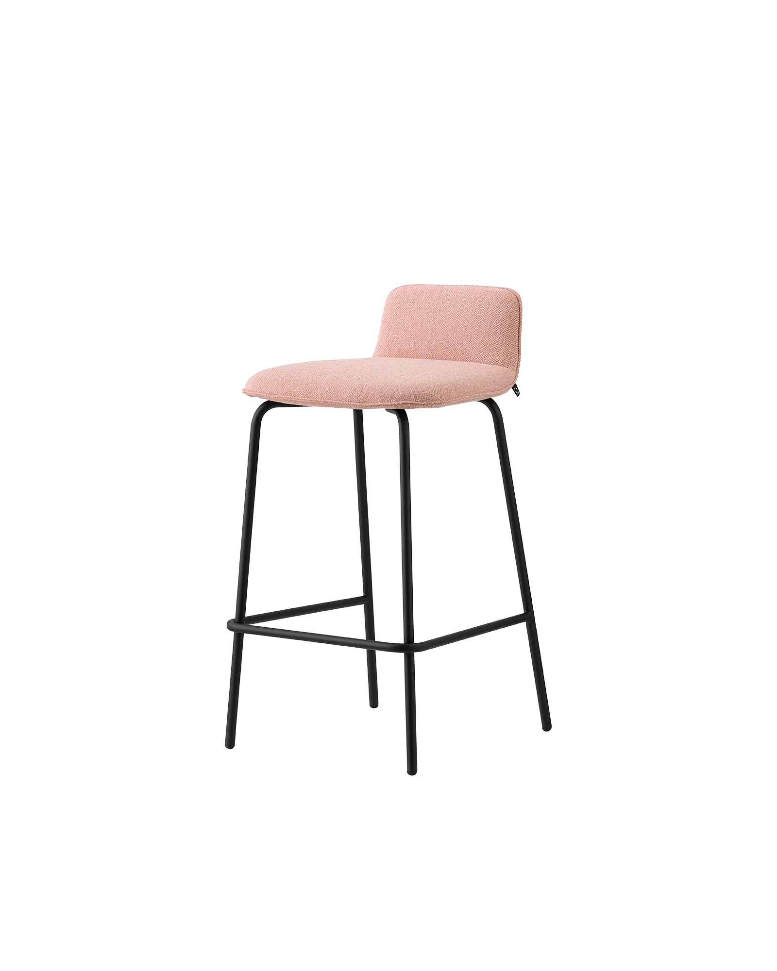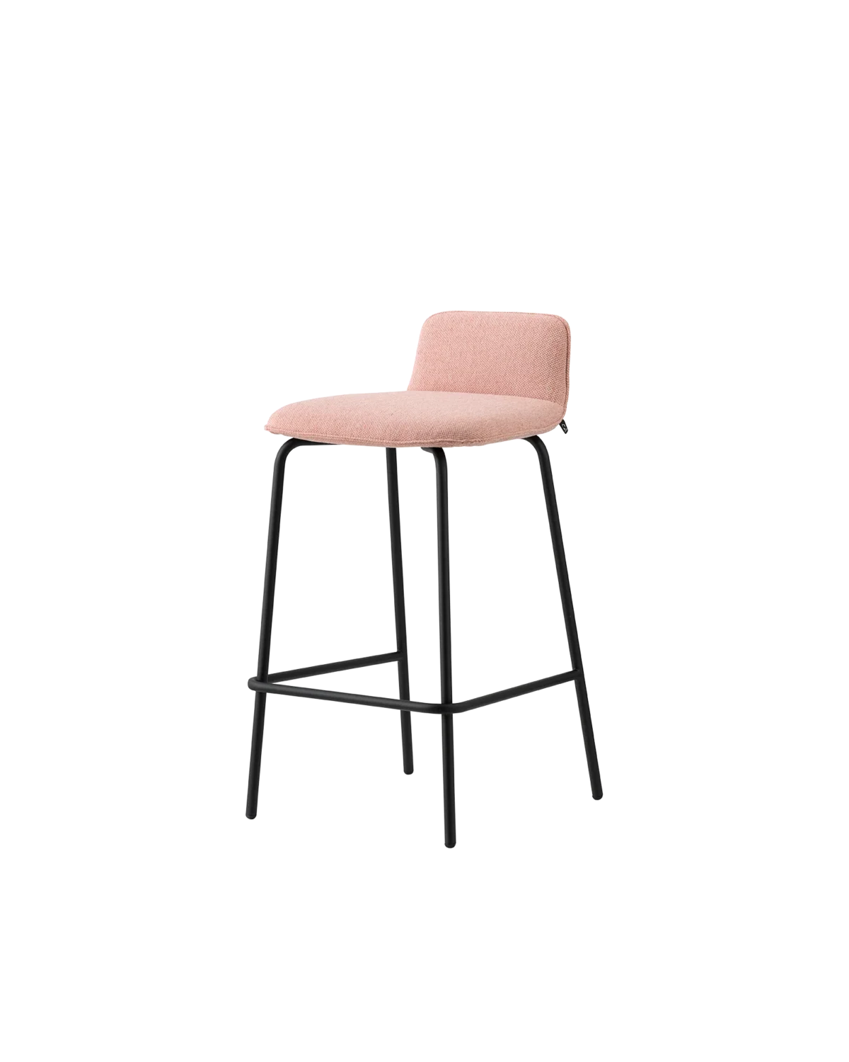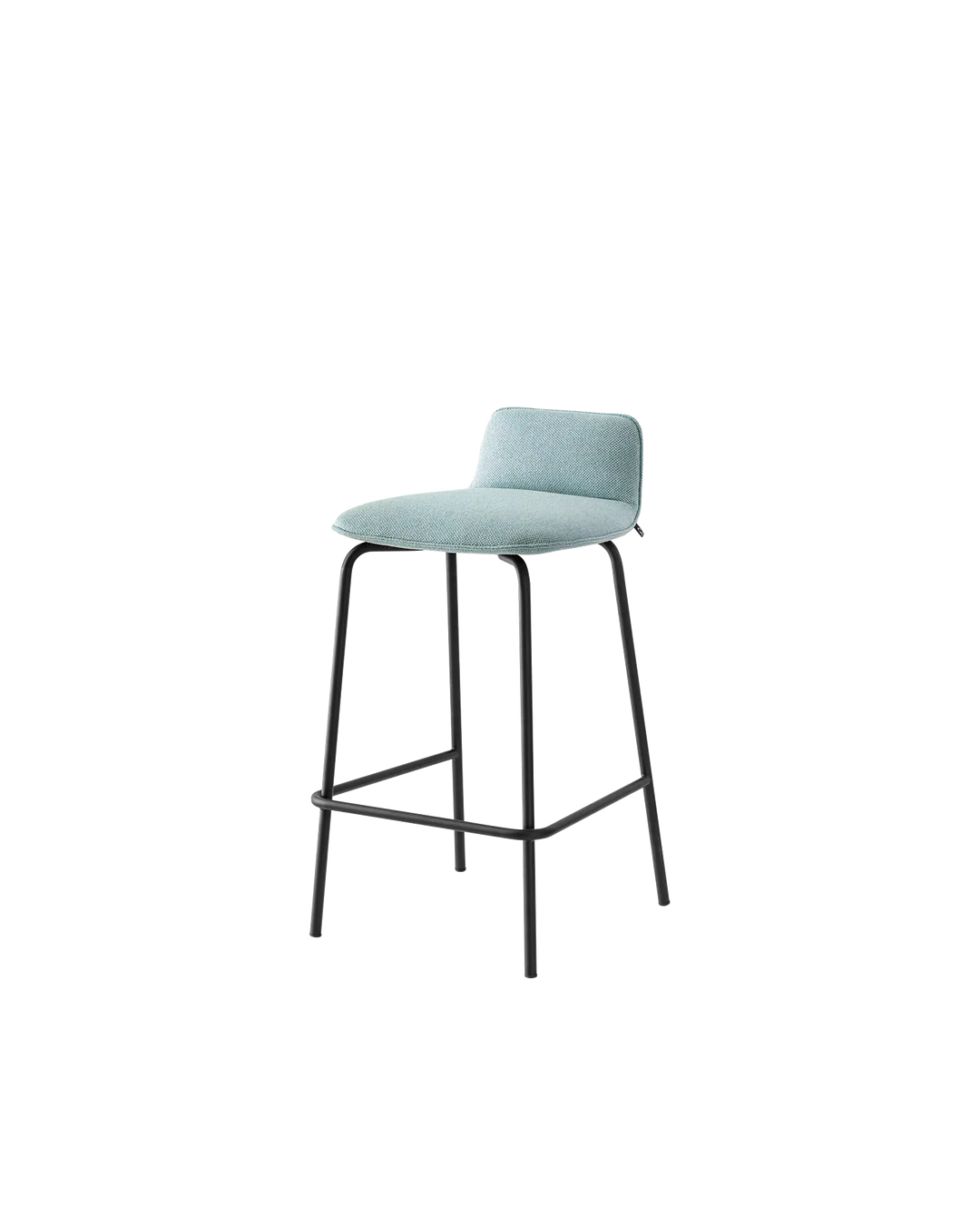 Sgabello RILEY con base in tondino di metallo. Sedute a scelta fra diversi materiali e finiture.