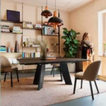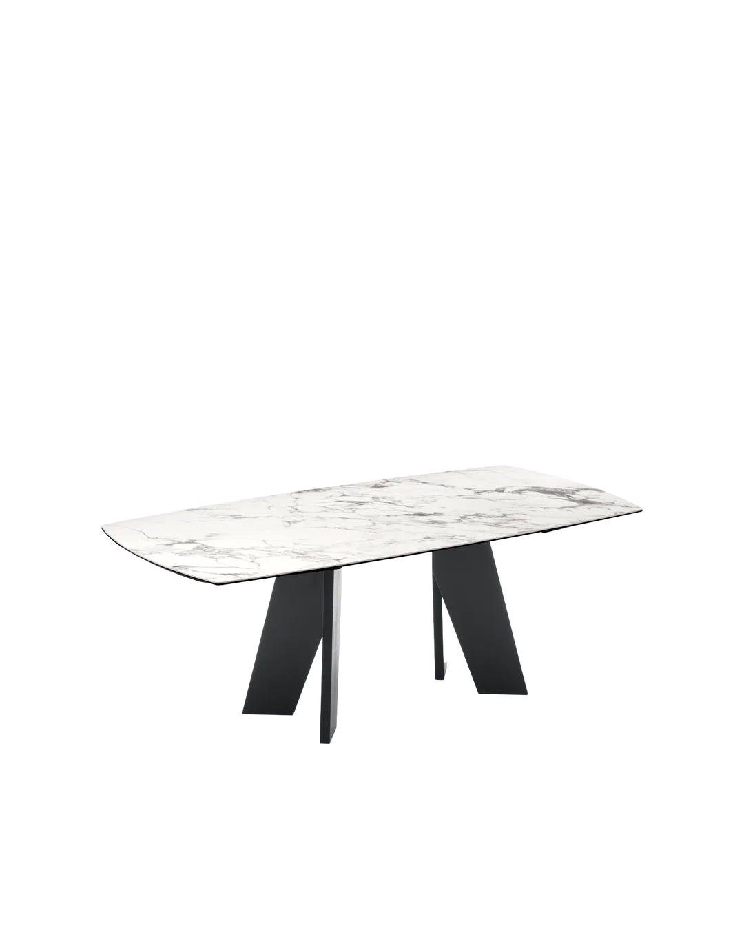 Il tavolo Victor si distingue per il suo basamento caratterizzato da due cavalletti in legno di frassino tinto, che creano un segno grafico distintivo e conferiscono dinamismo e slancio visivo all’intero design. Il piano in ceramica, raffinato e resistente, si integra armoniosamente con la base, esaltando il contrasto tra i materiali. L’equilibrio tra solidità e leggerezza rende questo tavolo un elemento di grande impatto estetico, capace di arricchire qualsiasi ambiente con la sua eleganza.
