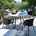 Il tavolo fisso YO! ha un basamento in alluminio trattato e verniciato per un utilizzo outdoor. I piani sono a scelta tra laminato HPL o ceramica con tecnologia In-side per ottenere un mélange materico proprio delle pietre naturali che consente uniformità di finitura fra superficie e bordo. Sono facili da pulire e non necessitano di interventi di manutenzione nel tempo. La particolare lavorazione della ceramica non consente l’insorgenza di funghi e muffe. Yo! ha anche un animo green, è infatti disponibile un top in Eco-stone, realizzato con materiali compositi riciclati post-consumo ed è nuovamente riciclabile a fine vita.